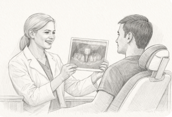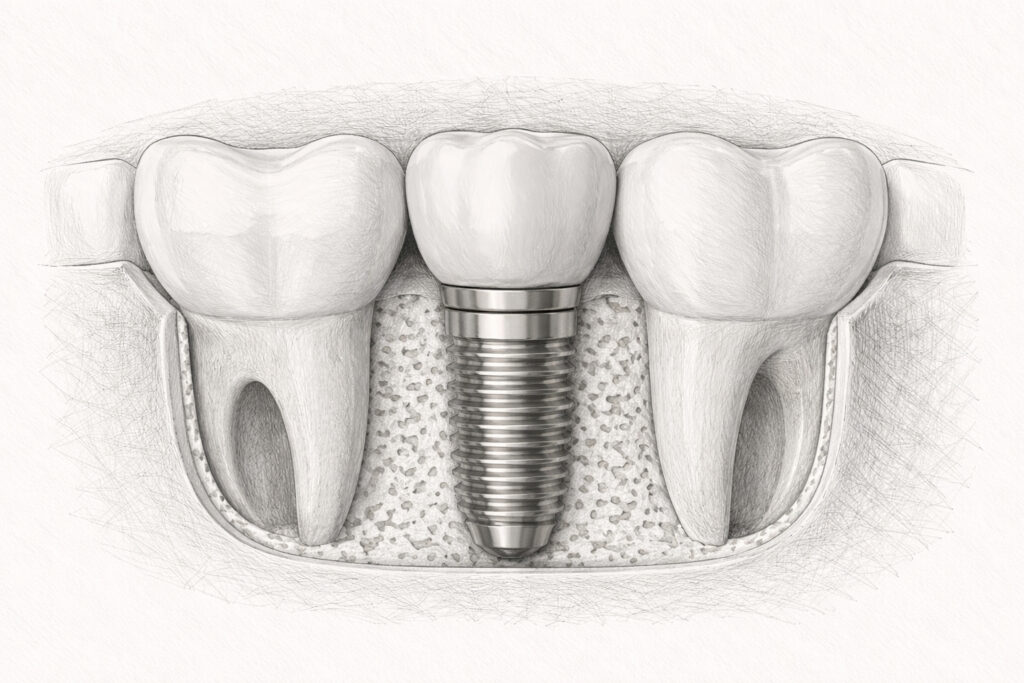 In der Einheilphase verbindet sich das Implantat mit dem Knochen. Diese Phase ist wichtig für eine langfristig stabile Versorgung.