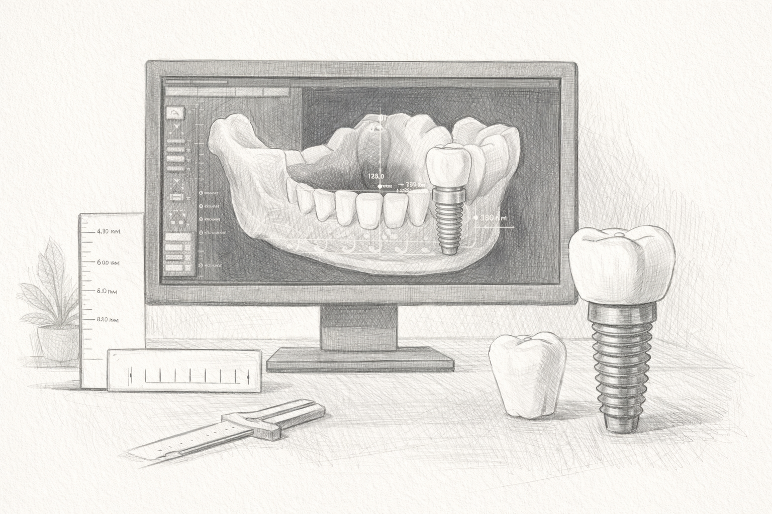 Ein Zahnimplantat ist eine künstliche Zahnwurzel, die fest im Kiefer verankert wird. Sie dient als stabile Basis für Kronen, Brücken oder andere Formen des Zahnersatzes und kann fehlende Zähne funktional und ästhetisch ersetzen.